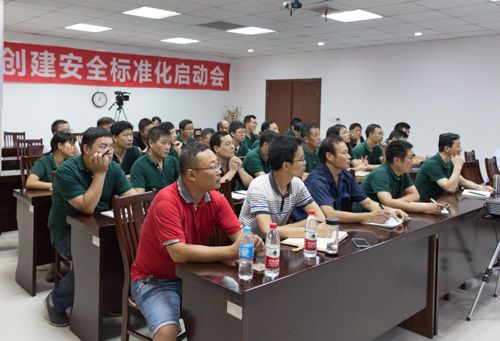為進一步提高公司安全管理水平,增強全員安全意識,將安全管理向制度化、規范化推進,公司著手推進安全標準化的建立,于2017年8月8日下午,召開安全標準化工作啟動會議;出席會議的有安監局領導、培訓輔導機構老師及公司總經理翟海平、各部門負責人、車間主任、班組長、其他安全相關人員40余人。