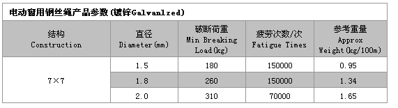 | 7×7 電動窗用鋼絲繩 |